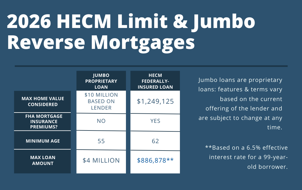 Jumbo reverse mortgages are designed for homeowners of higher-valued properties that exceed the federal lending limit, helping them access a larger portion of their home's value. Typically those over the age of 55 or 60 with significant equity in a higher-value home could be ideal candidates for a private jumbo reverse mortgage.